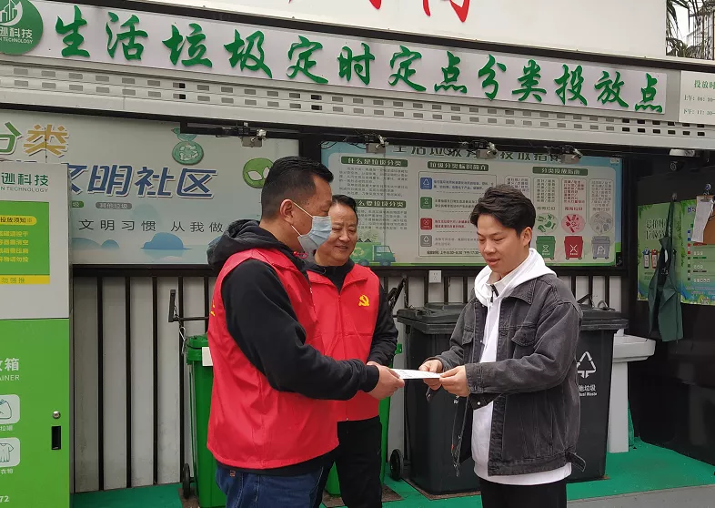随后,党员们在小区内通过发放宣传单、宣传册、提供咨询等方式,向居民们宣传生活垃圾分类的各方面知识,耐心地接受居民咨询、细心为其讲解。