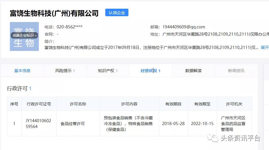 值得一提的是,辽宁溢涌堂生物科技有限公司、富饶生物科技(广州)有限公司的法人代表都是付瑶,而并不是官网宣传中使用的傅尧。